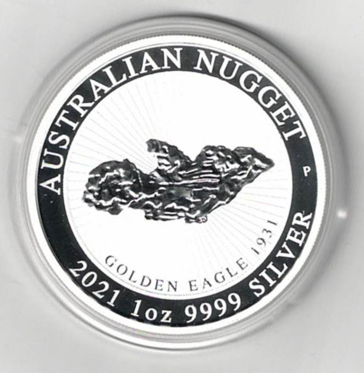2021 Silver Australian Nugget Golden Eagle One Ounce Coin. Elizabeth II is on the obverse, a Golden Eagle gold nugget on reverse. All coins are in stock.2021 Silver Australian Nugget Golden Eagle One Ounce Coin