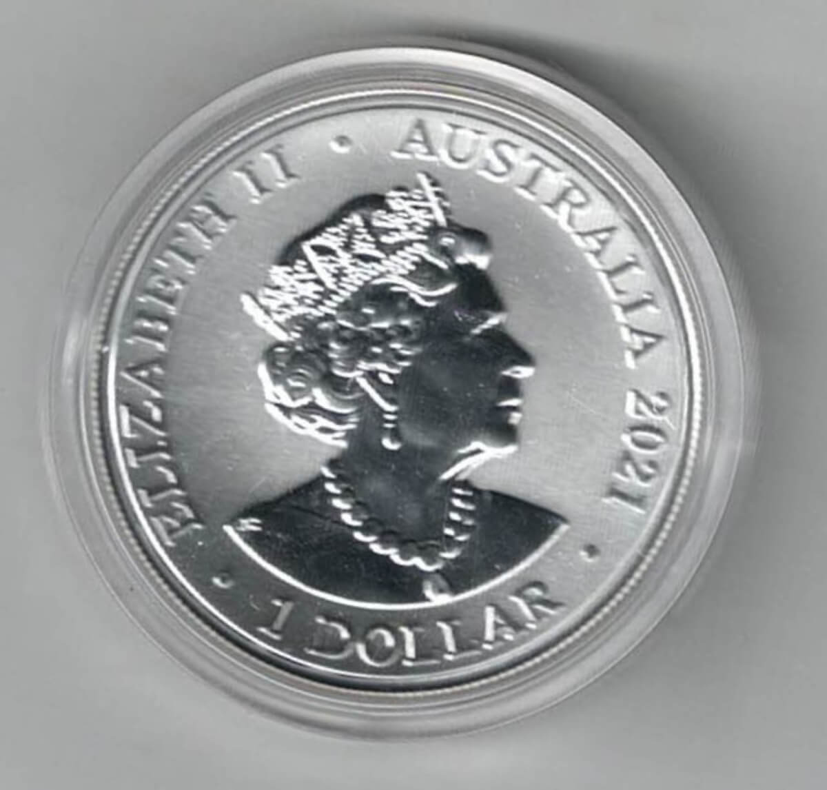 This coin has an intrinsic value of One Australian Dollar and contains one ounce of 999 fine silver.