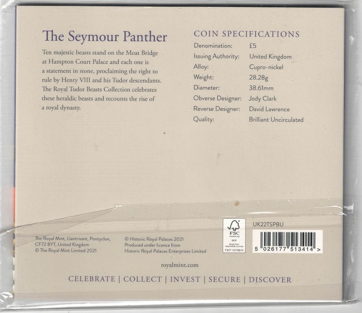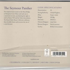 2022 Cupro-Nickle Five Pounds The Royal Tudor Beasts, The Seymour Panther In Royal Mint Pack.