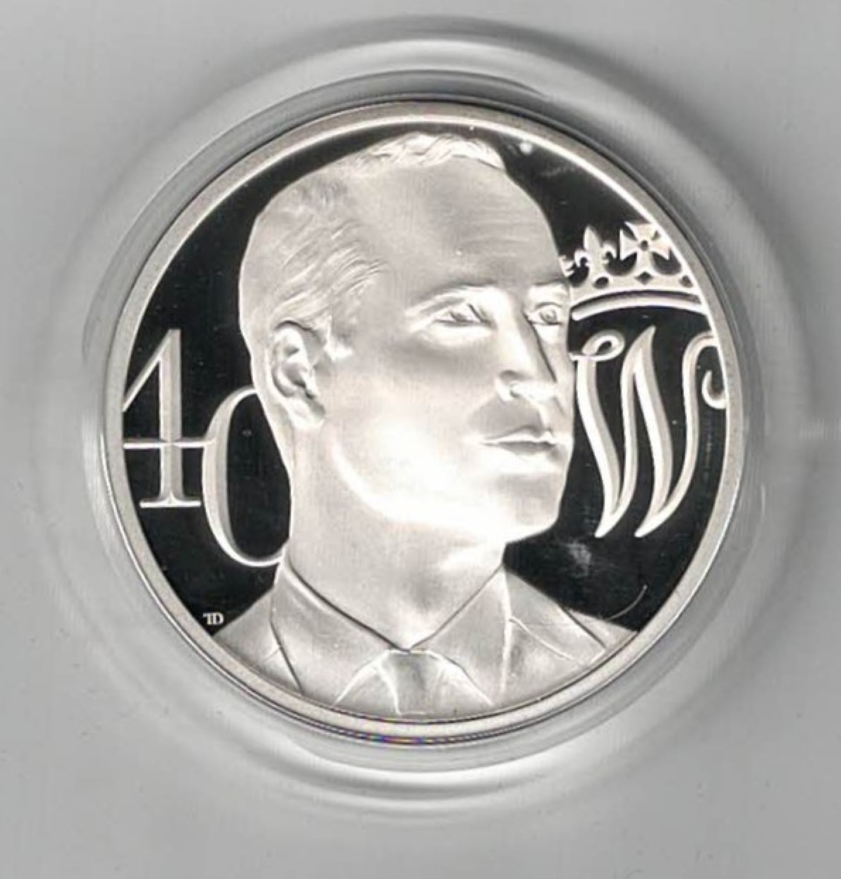 This is a commemorative coin celebrating the 40th anniversary of birth of Prince William.