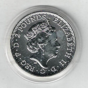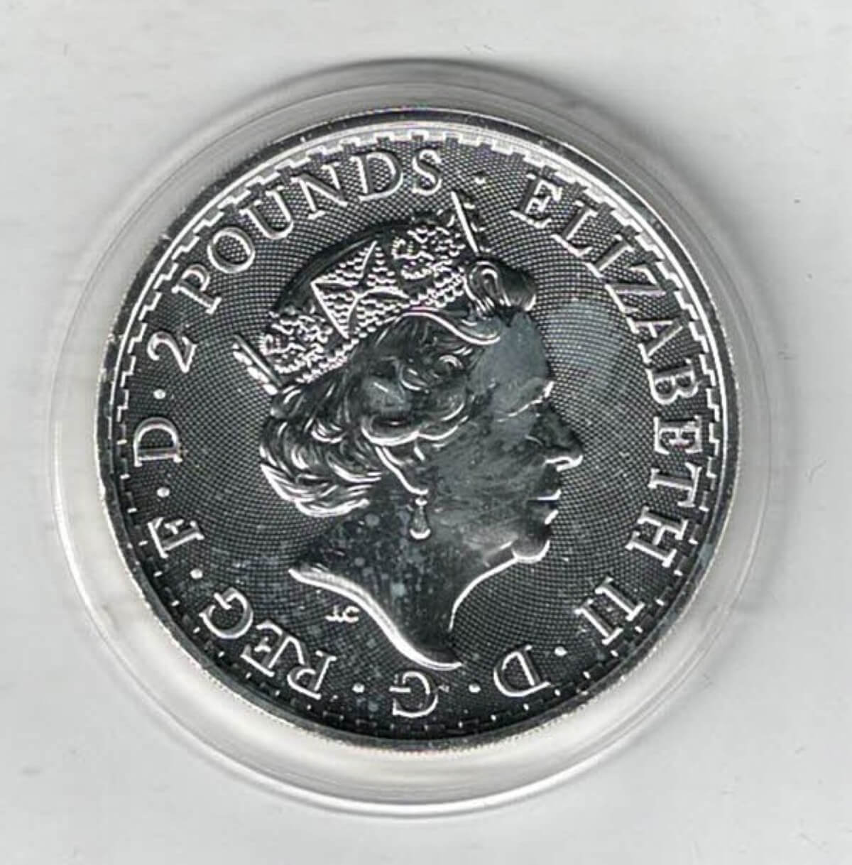 2022 Queen Elizabeth II One Ounce Silver Britannia £2 Coin In Near Mint Condition.