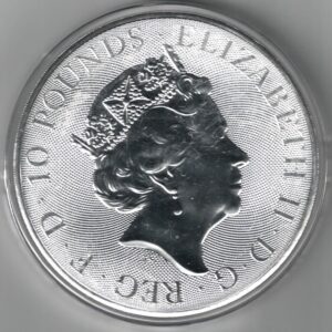 The picture is a stock item and you will receive a similar 2022 Silver Ten Ounce Queen’s Beast Coin of our choice.