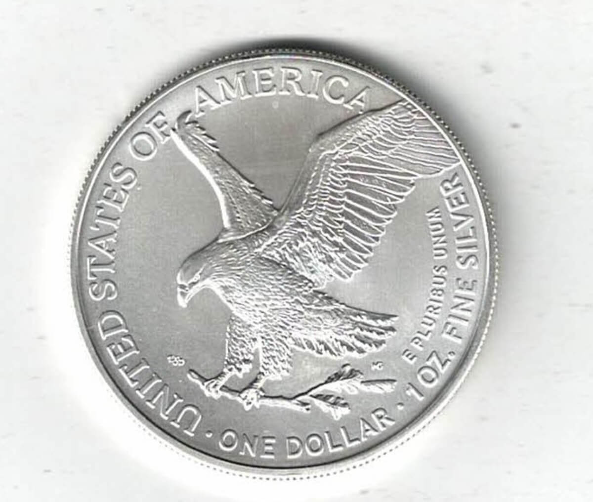 The 2022 Eagle is a coin struck in fine silver by the US Mint . The obverse features the Liberty in full stride. The reverse features the eagle carrying an oak branch.