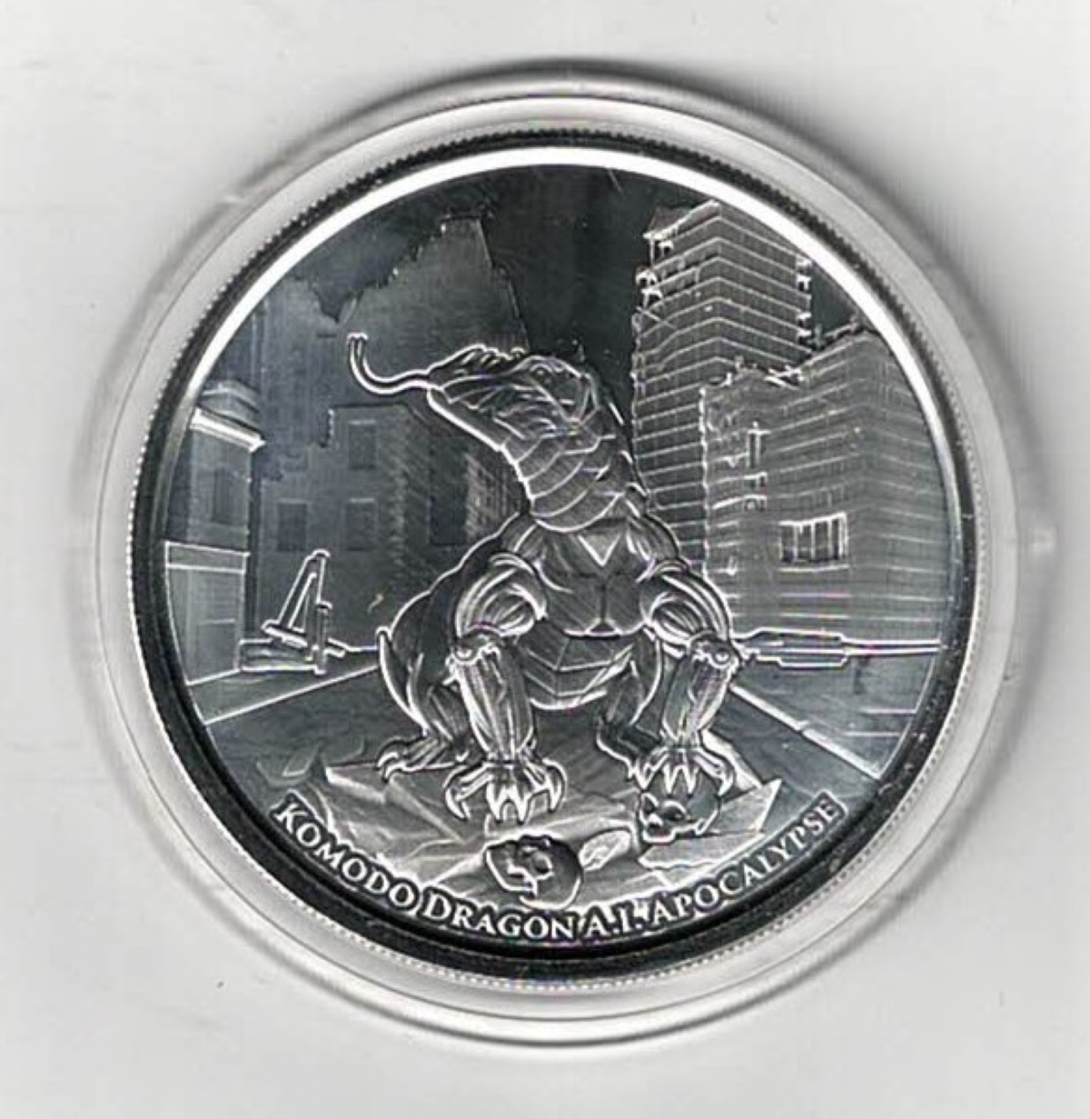 2022 Tokelau (New Zealand) Silver One Ounce ‘Komodo Dragon A.I Apocalypse’ Coin In Near Mint Condition.