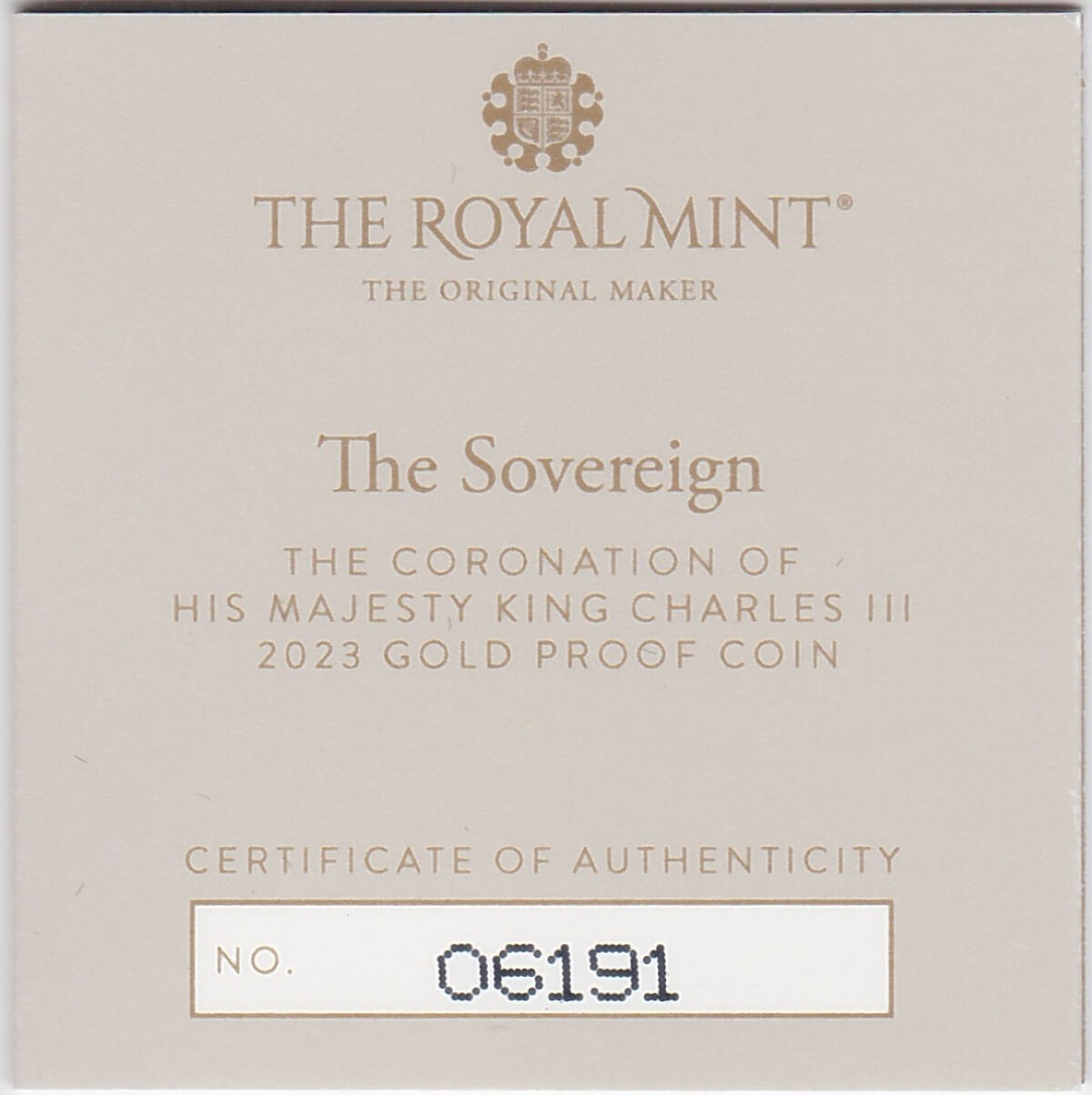2023 King Charles III Gold Proof Full Sovereign Coin In Mint Condition.