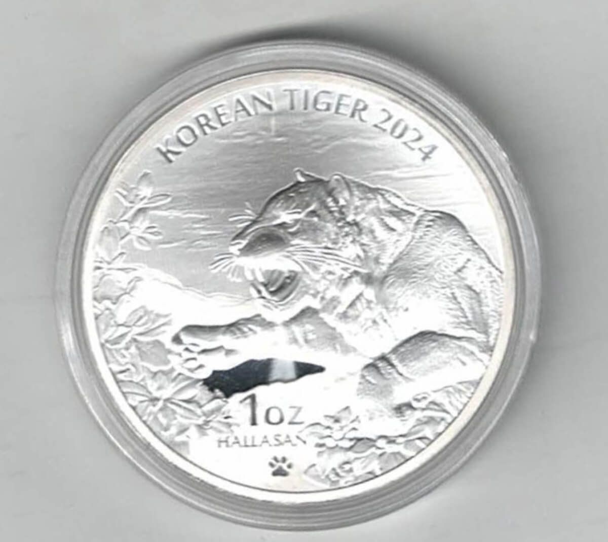 2024 Korea Silver One Ounce Korean Tiger Coin. This Coin does features a tiger. The coin contains one ounce of 999 fine silver.2024 Korea Silver One Ounce Korean Tiger Coin