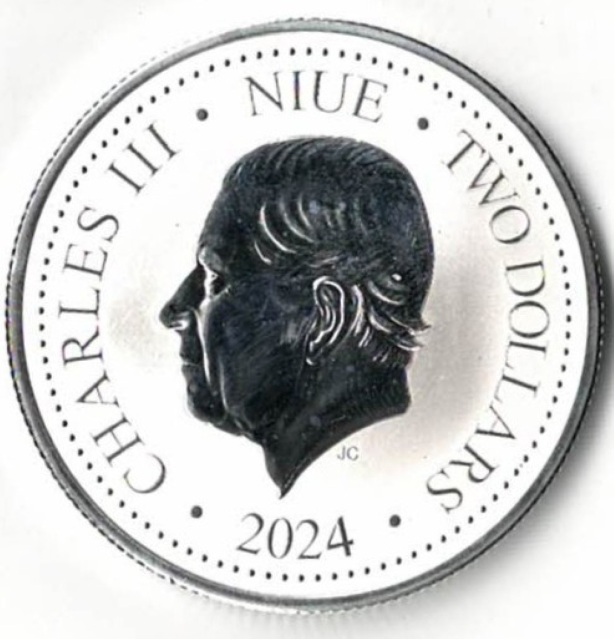 This 2024 coin was struck in .999 fine silver. The obverse features Charles III. The reverse features a resplendent Silver Phoenix.