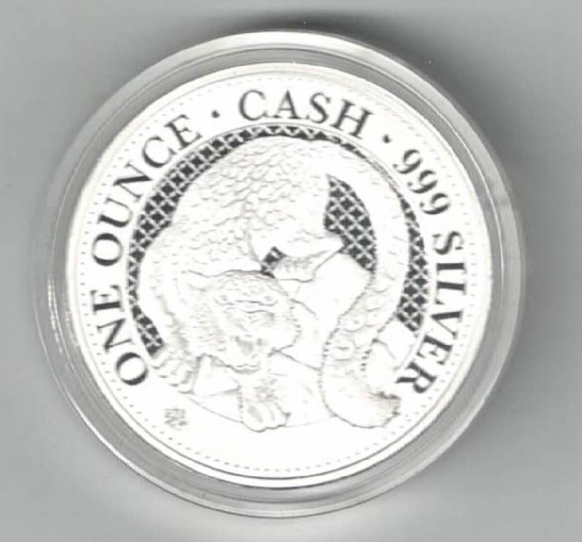 The coin contains one ounce of 999 fine silver.