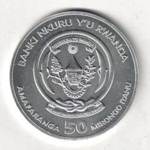 This coin has an intrinsic value of 50 Amafaranga (50 Francs).