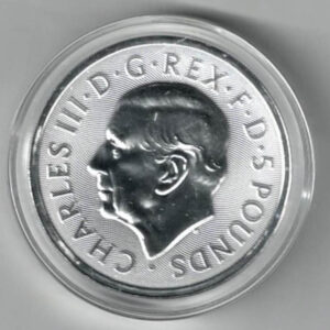 The obverse features the portrait of Charles III facing left. The reverse features a standing unicorn with royal coronet on with a wreath of flowers holding the arms of Jane Seymour.
