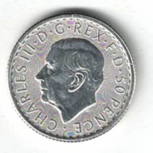 The reverse of the 2025 silver Britannia 1/4oz coin features the classic image of Lady Britannia by Philip Nathan. The obverse side of the coin features the official effigy of King Charles III.