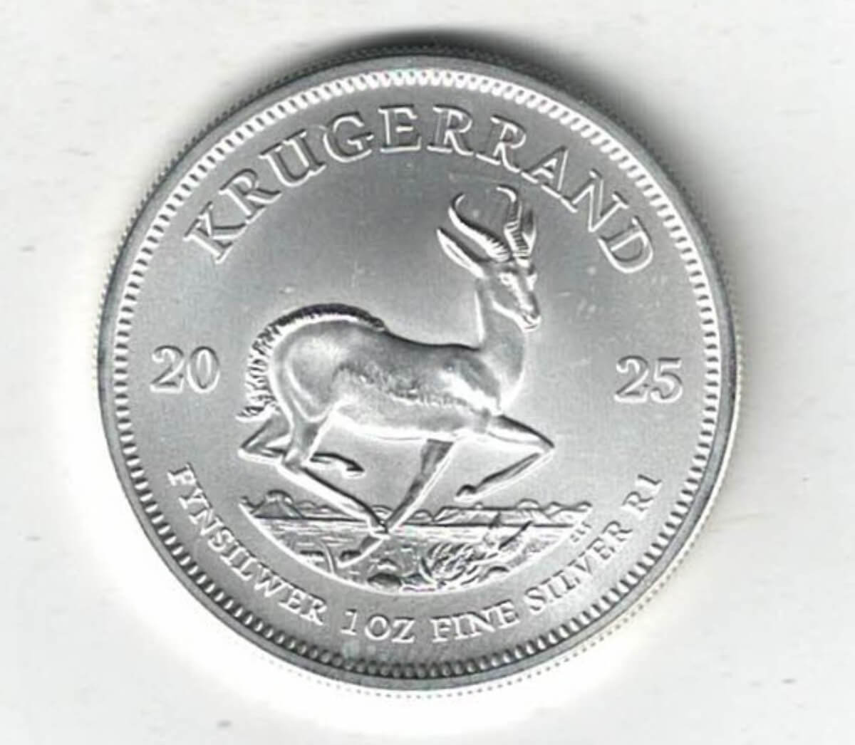 2025 Silver South Africa One Ounce Krugerrand 1 Rand Coin In Near Mint Condition.