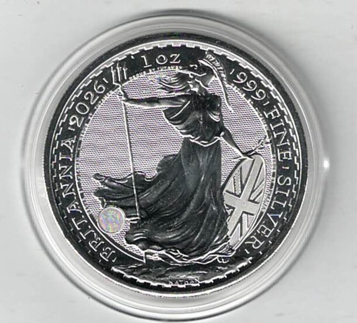 The picture is a stock image item and you will receive a similar 2026 Silver One Ounce Britannia coin of our choice.