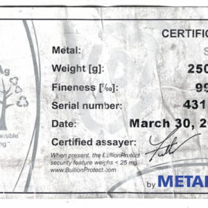 Bullion 250 Gram Silver Bar Metalor In Near Mint Condition.