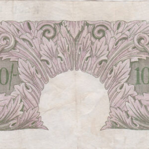 The B251 Ten Shillings was issued by the Bank of England in 1940. The note is mauve and grey. The obverse features a seated figure of Britannia at left. The reverse shows the denomination within leaf designs.