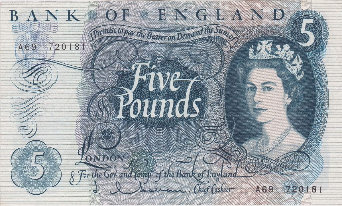 You are buying the B297 Hollom Five Pounds banknote A69 in the pictures.