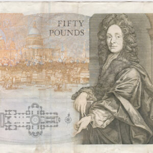 The B356 Kentfield banknote was issued by the Bank Of England. This note is olive-green and brown on multicolour underprint. The note features Queen Elizabeth II at right, with a Phoenix in centre. The reverse features Sir Christopher Wren at centre right, and St. Paul’s Cathedral on the left.