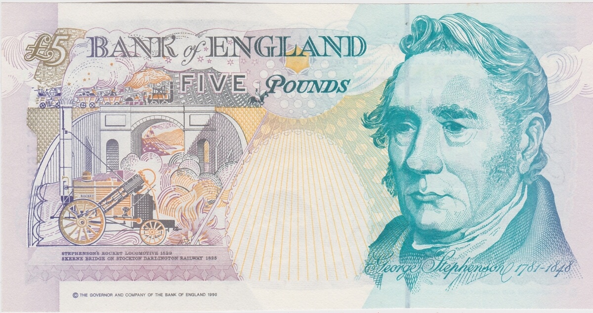 This is the Series E First Historical banknote with George Stephenson on the reverse.