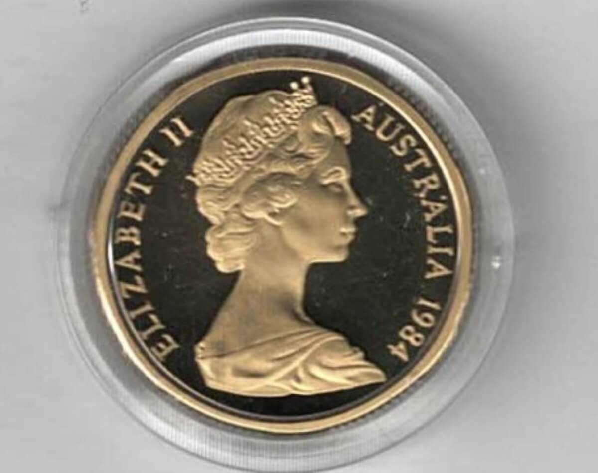 Boxed 1984 Australia Proof One Dollar Coin In Near Mint Condition.
