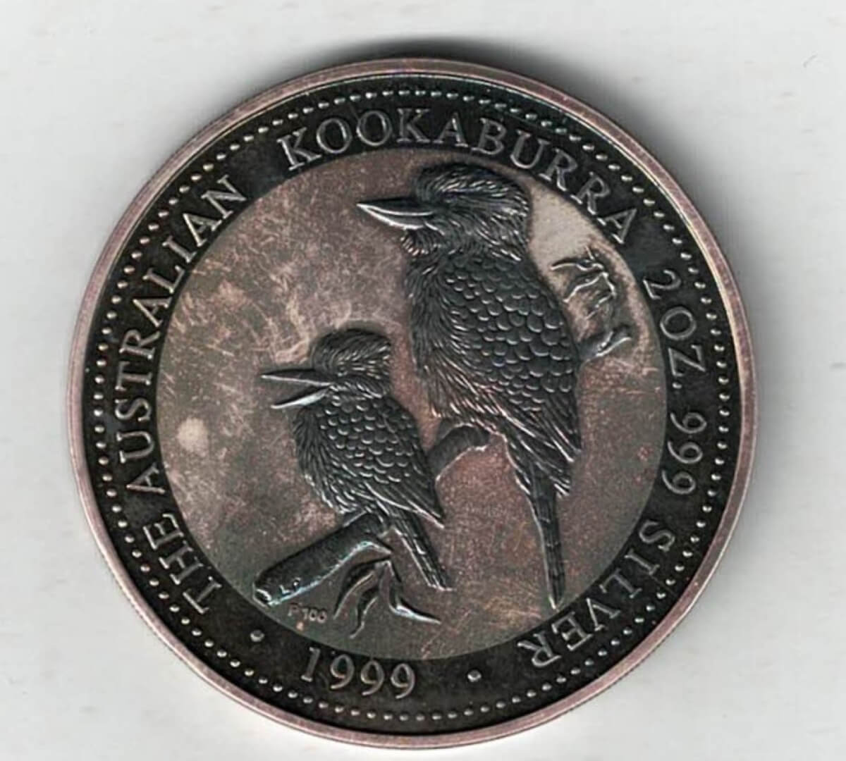 Boxed 1999 Australia Silver Two Ounce Kookaburra Coin In Extremely Fine To Near Mint Condition.