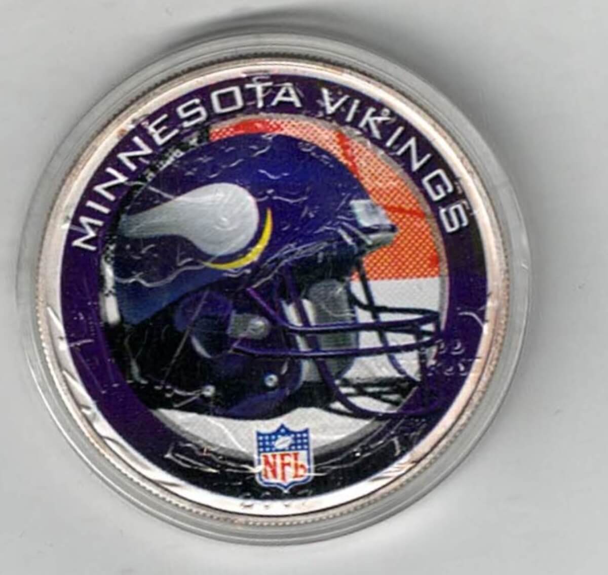 Boxed 2007 Silver USA One Ounce Eagle Colourised NFL Minnesota Vikings Coin In Near Mint Condition.