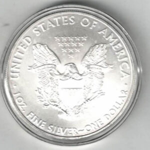The 2008 Eagle is a coin struck in fine silver by the US Mint . The obverse features the World Trade Centre and Statue Of liberty marking the 7th Anniversary of September 11th. The reverse features the Heraldic eagle with shield.