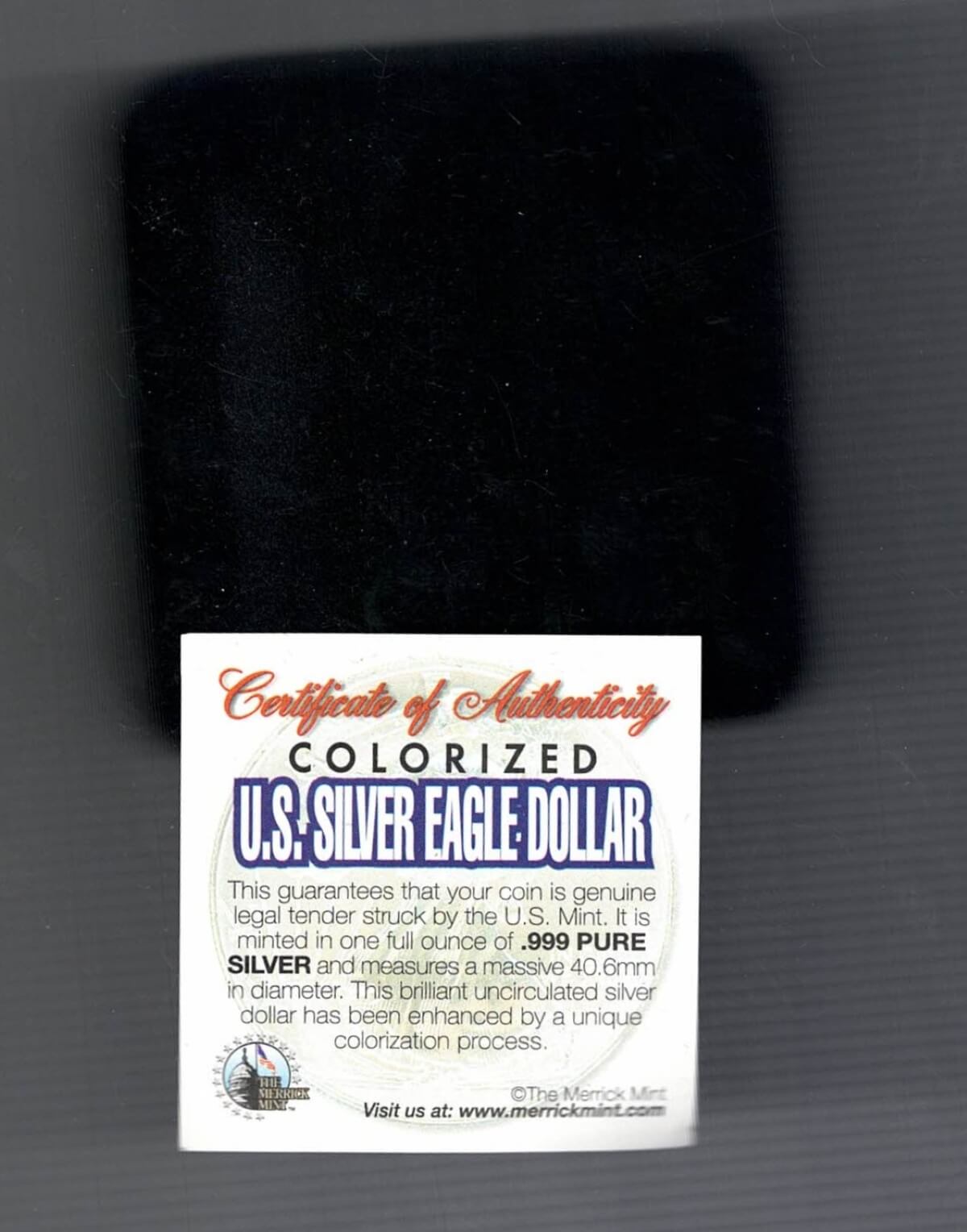 This coin comes in a hard black box with certificate and capsule.