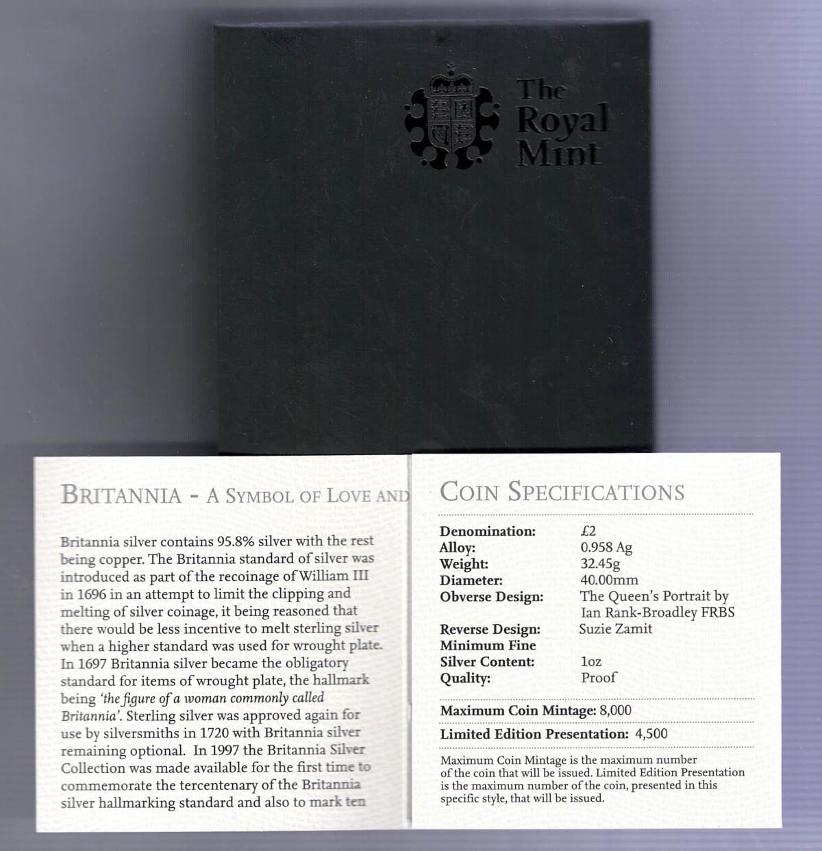 You are buying the silver proof Britannia coin in the pictures.