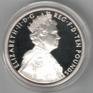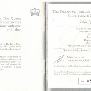 Boxed 2012 Silver Proof Five Ounce The Queen’s Diamond Jubilee Ten Pounds Coin In Near Mint Condition.