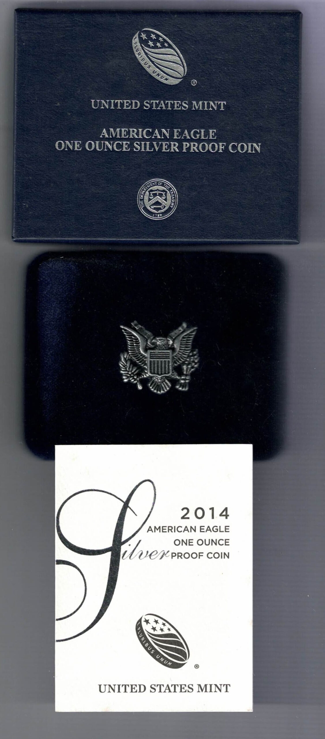 Boxed 2014 W Silver Proof USA One Ounce Eagle One Dollar Coin In Mint Condition.