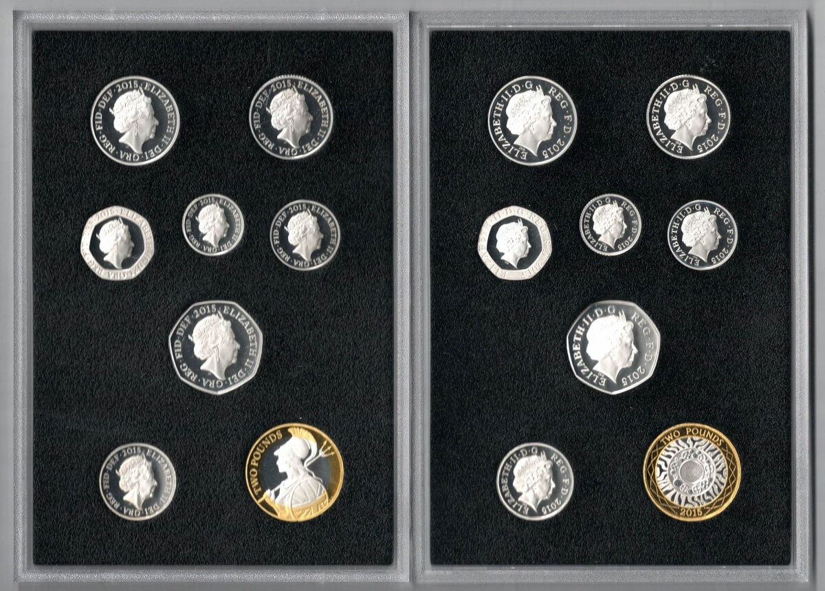 The coins in this set contains the range of UK coins from the 1p to the £2. Each Coin in this collection features the portrait of the Queen Elizabeth II Fourth and Fifth. All coins in this collection have been struck to Proof Quality.