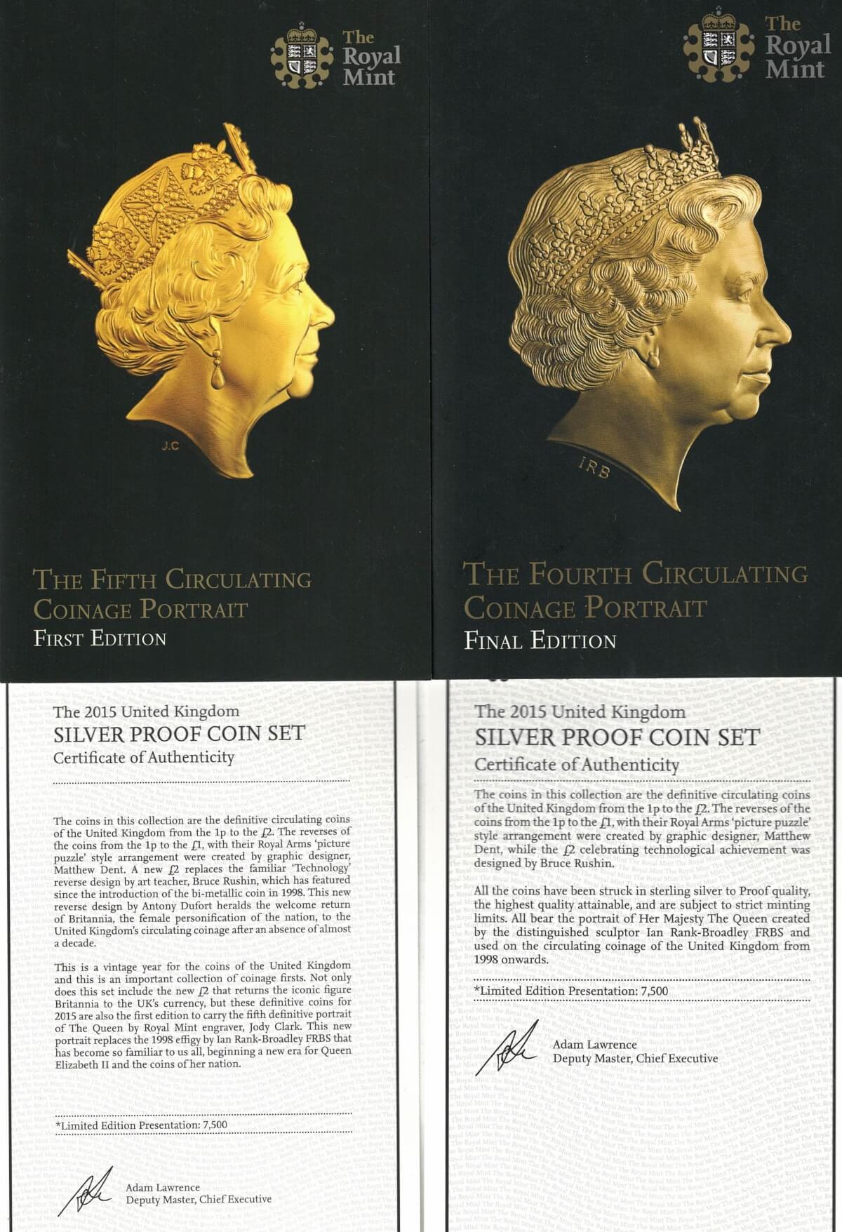 Boxed 2015 Royal Mint Sixteen Coin Fourth And Fifth Portrait Silver Proof Set In Near Mint Condition.