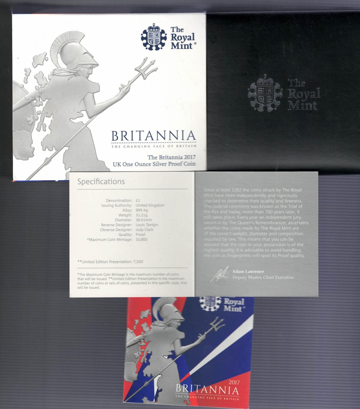 You are buying the 2017 silver one ounce proof Britannia coin in the pictures.