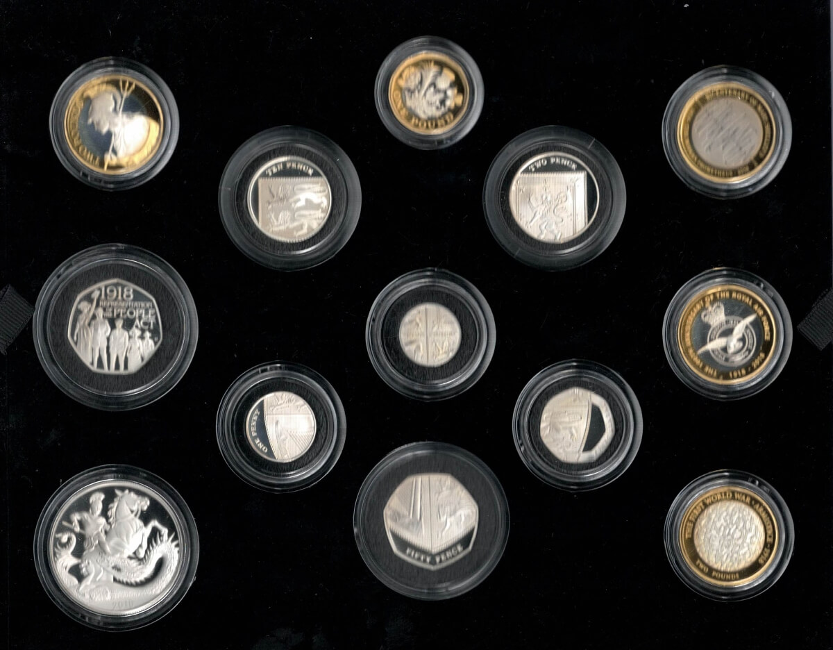 Boxed 2018 Royal Mint Thirteen Coin Silver Proof Set . This 2018 set comes with card box. All coins are in stock for despatch.Boxed 2018 Royal Mint Thirteen Coin Silver Proof Set