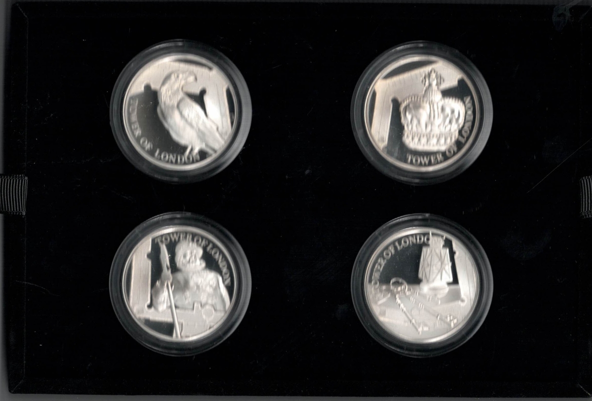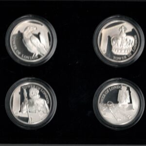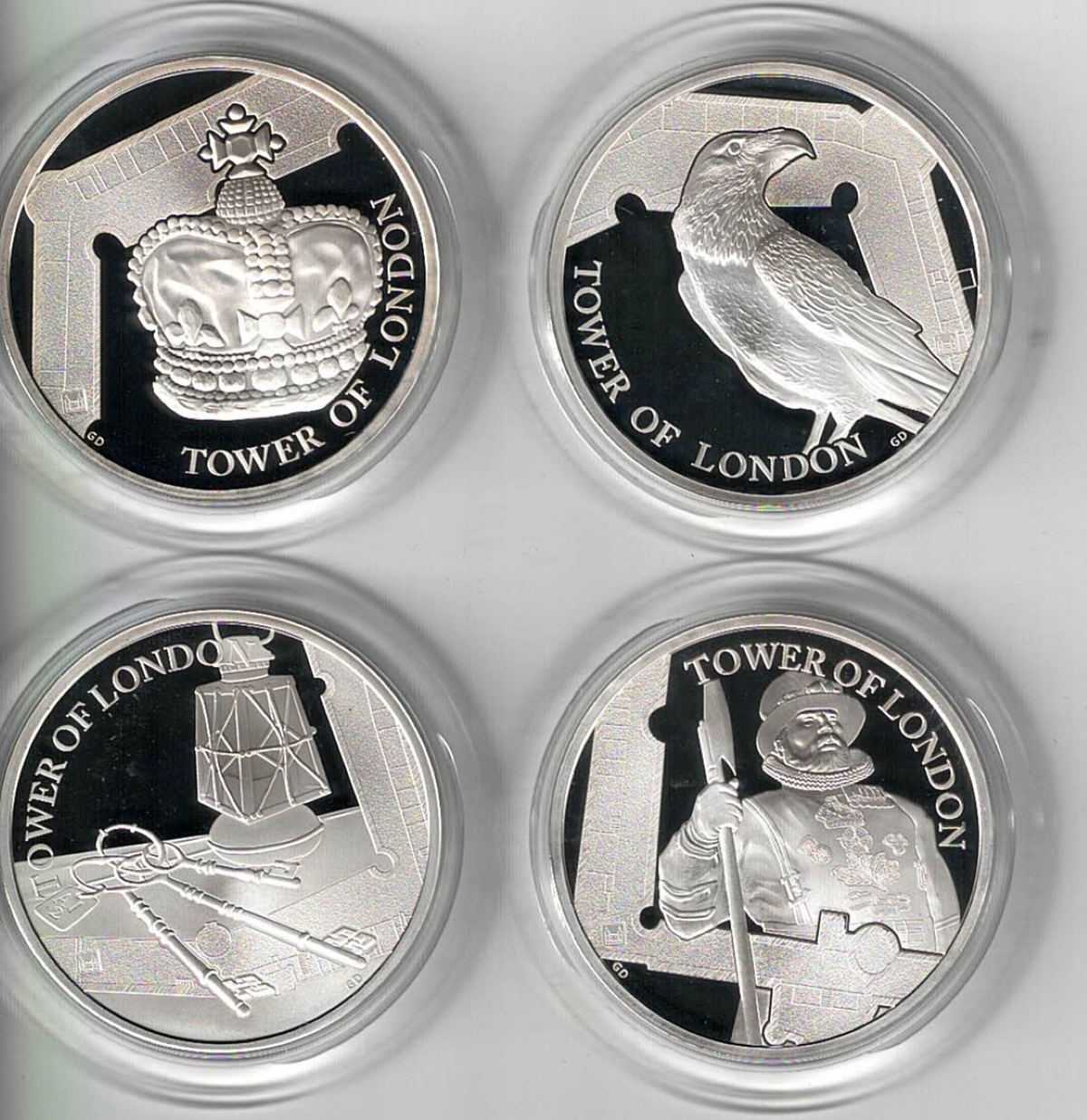The Four Coins in the Set are, The Yeoman Warders, The Crown Jewels, The Legend of the Raven and The Ceremony of the Keys.