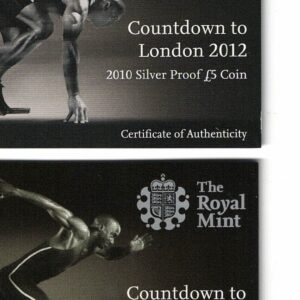 The pictures are stock issue, you will receive a similar Countdown to London Standard Silver Proof Five pound coin set.