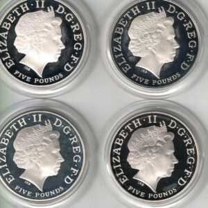 You are buying one set of four Standard Silver Proof Five Pound Coins.