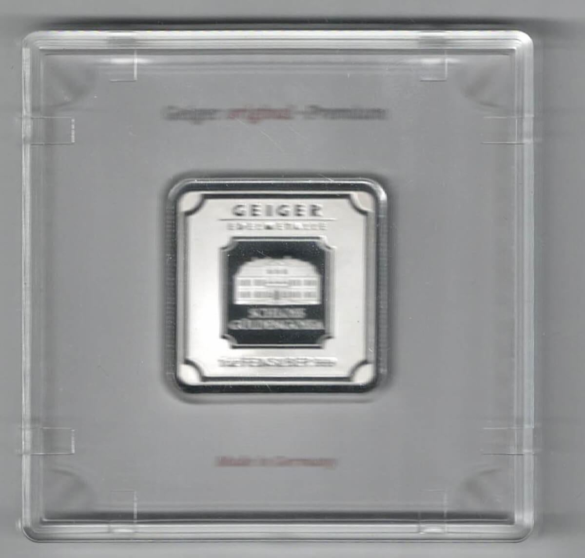 Cased Geiger Edelmetalle One Ounce Square Silver Bar