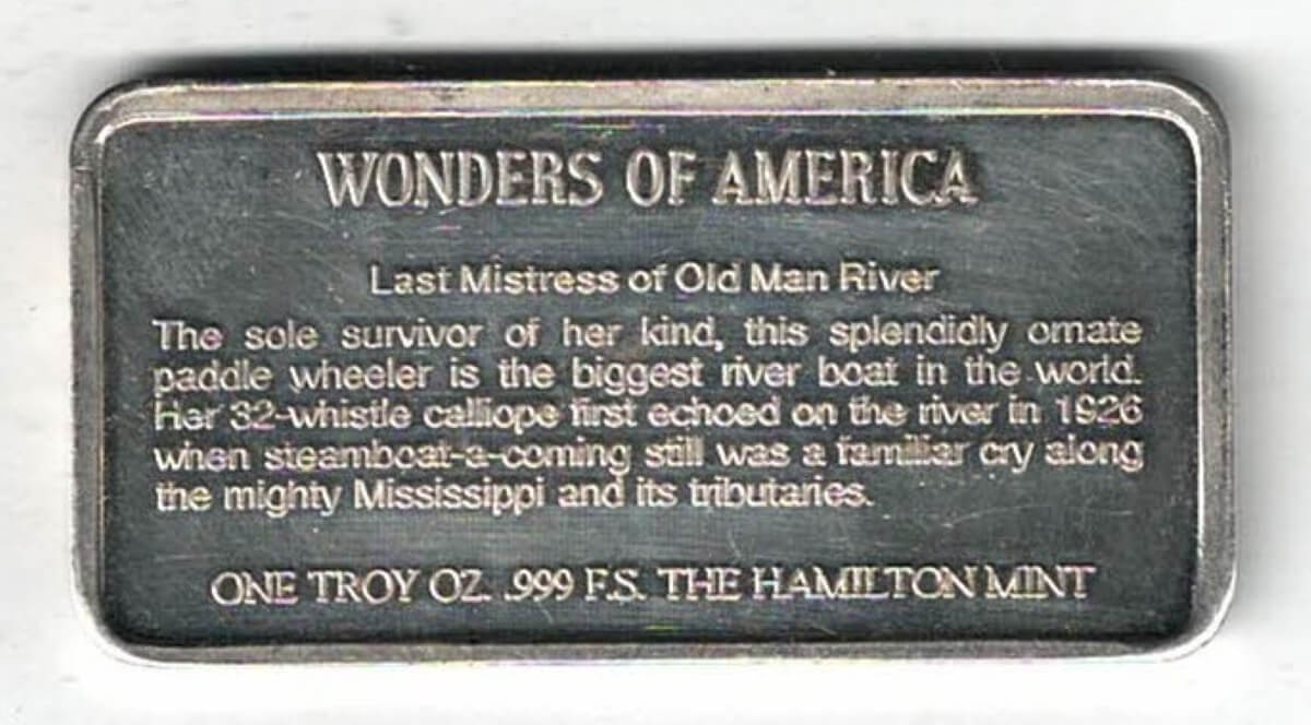 Delta Queen One Ounce Silver Bar In Near Mint Condition.