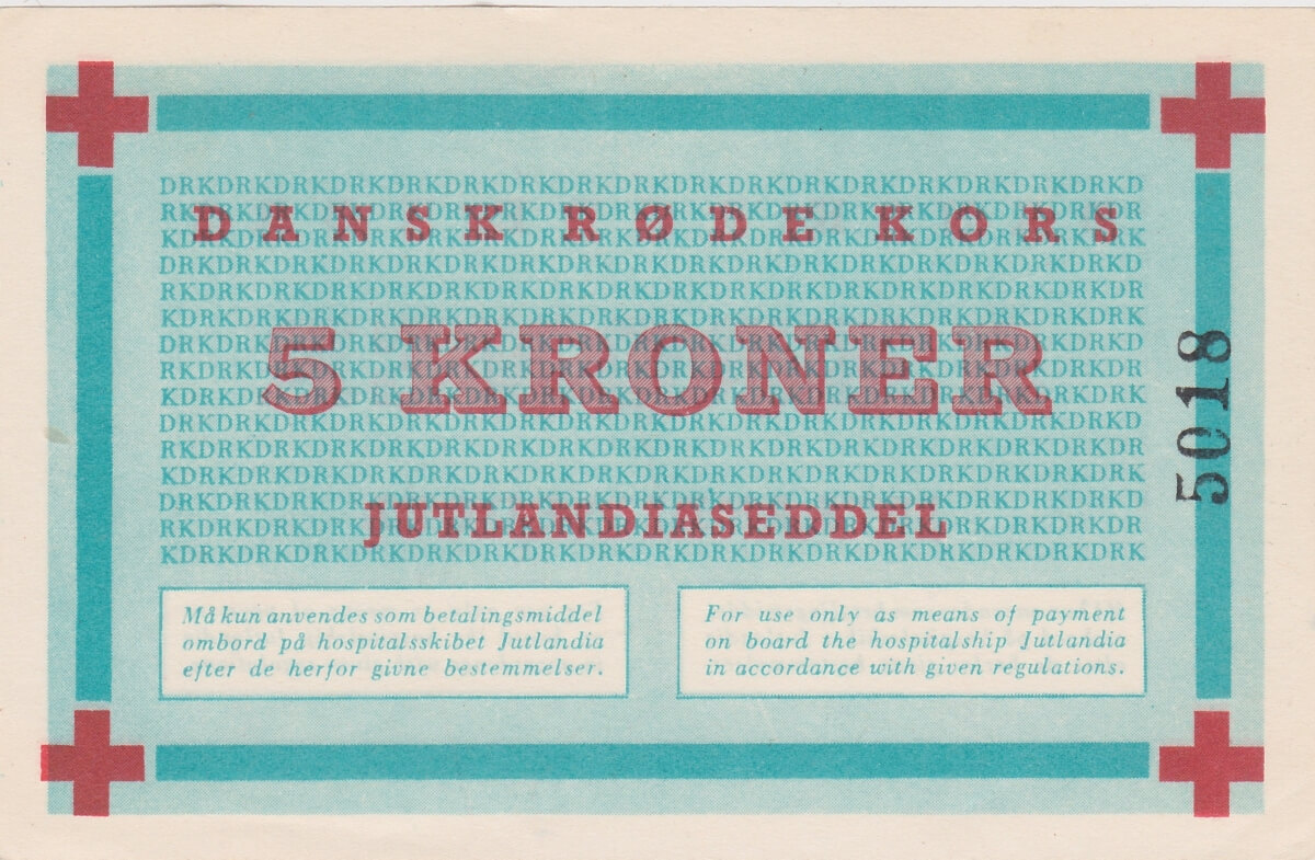 This five kroner banknote was issued for use on MS Jutlandia, with Prefix / Serial Number 5018.