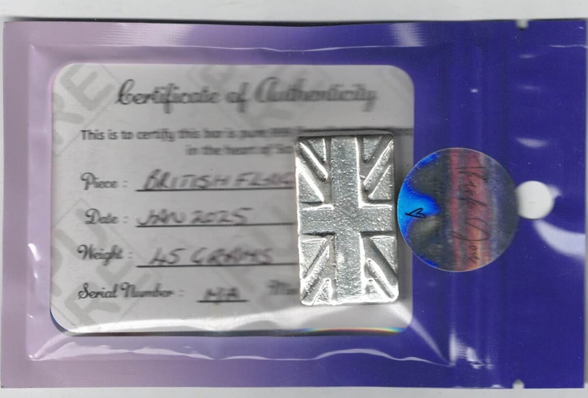 Forty Five Gram Scottish Union Jack Silver Bar In Near Mint Condition.