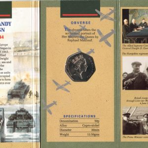 These coins are a commemorative issue to mark the 50th Anniversary of the D-Day landings.