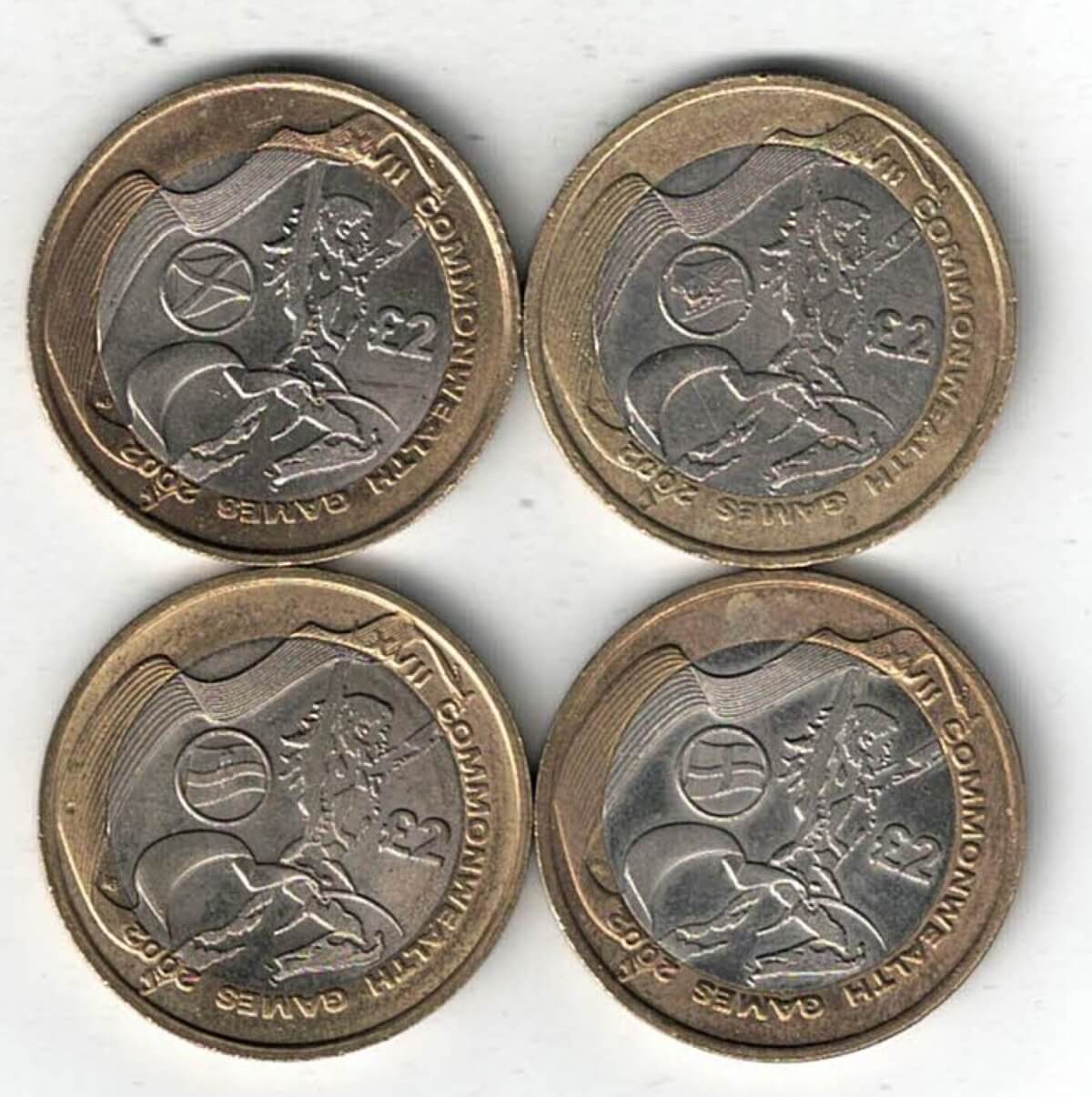 Four 2002 Commonwealth Games Two Pound Coin Set In Extremely Fine To Near Mint Condition.