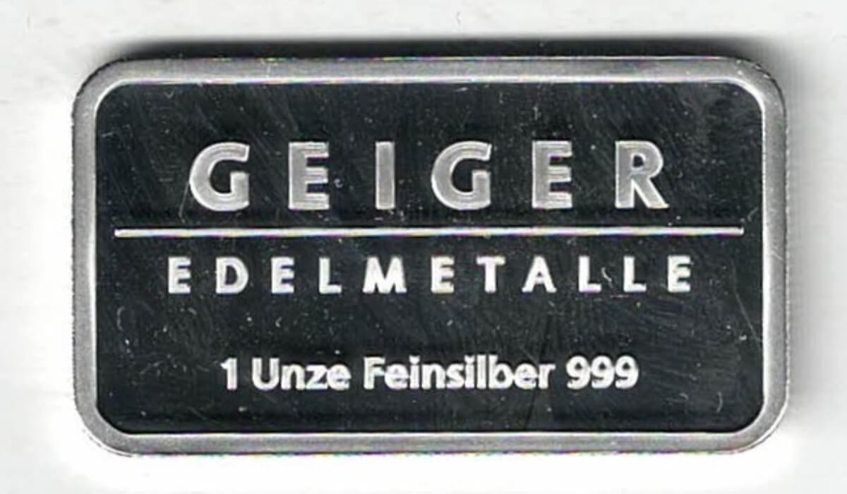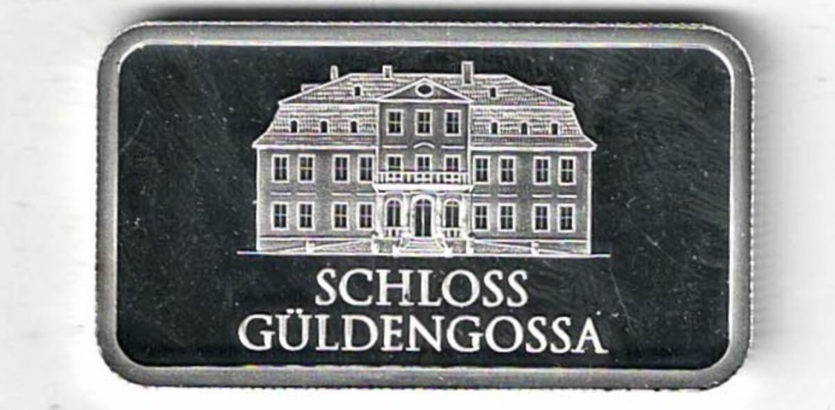 Geiger Edelmetalle One Ounce Silver Bar Schloss Guldengossa In Near Mint Condition.