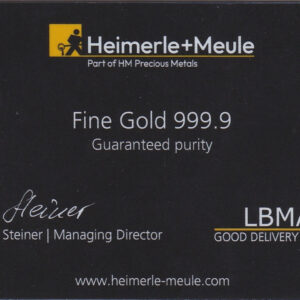 Bullion Heimerle + Meule One Gram Gold Bar.