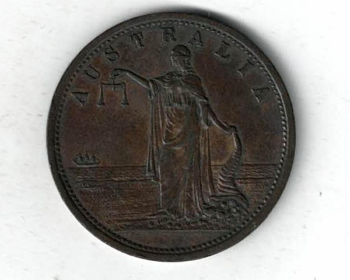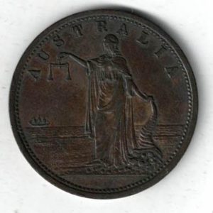 ND (1862) Australia R.Parker Ironmonger Copper Penny Token In Good Very Fine Condition.