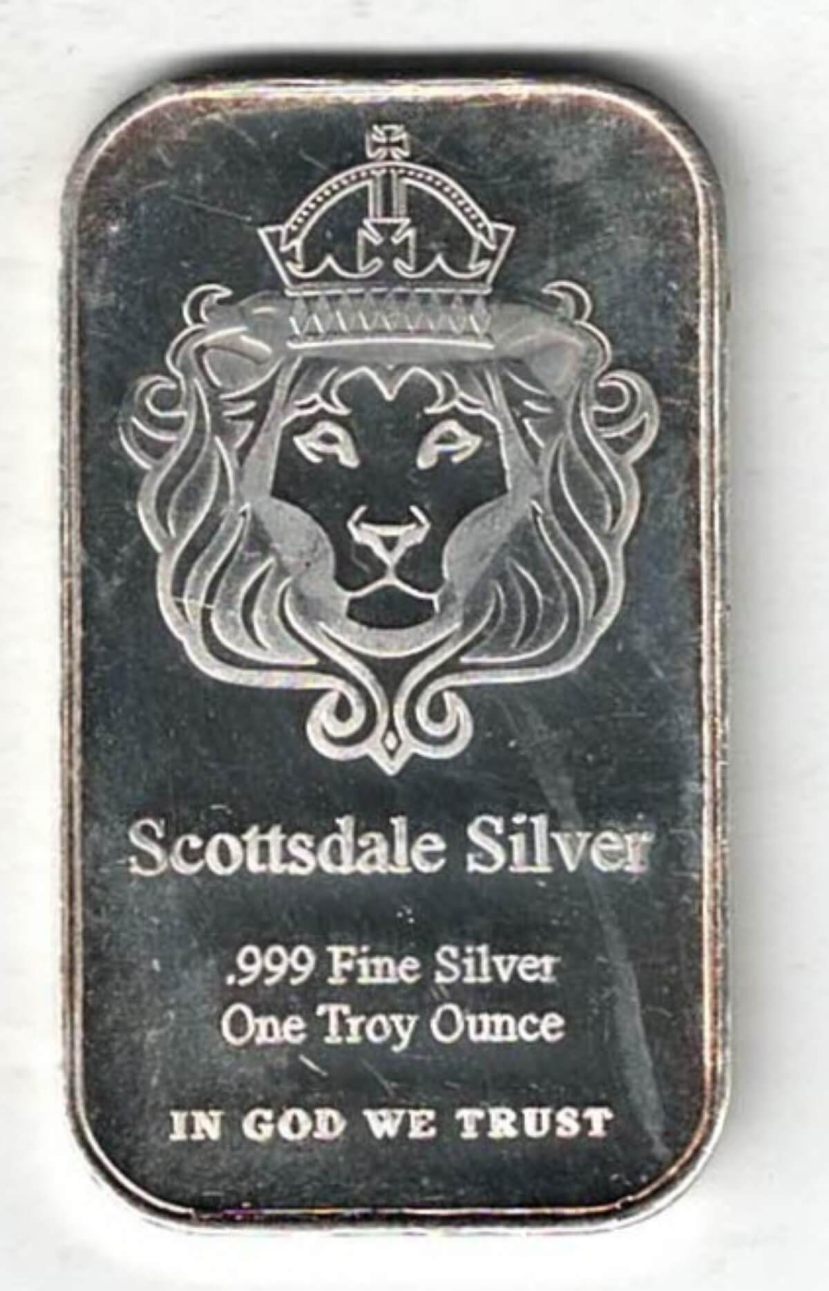 The pictures is a stock image, you will receive a similar Scottsdale mint silver one ounce bar of our choosing.