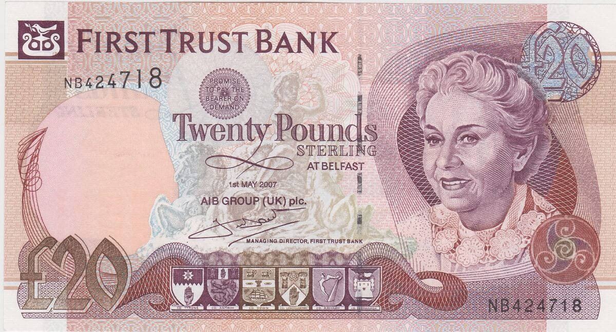You are buying the P137b First Trust Bank Twenty Pounds Banknote in the pictures.