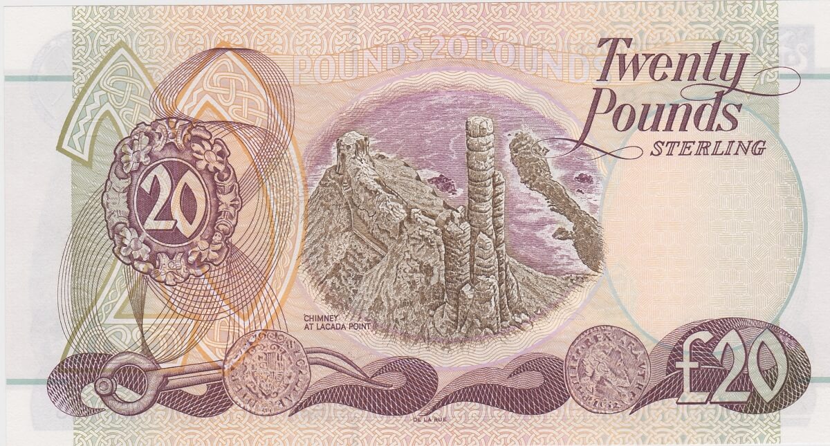 There is no writing, repairs, pin holes or tears on this twenty pounds banknote.