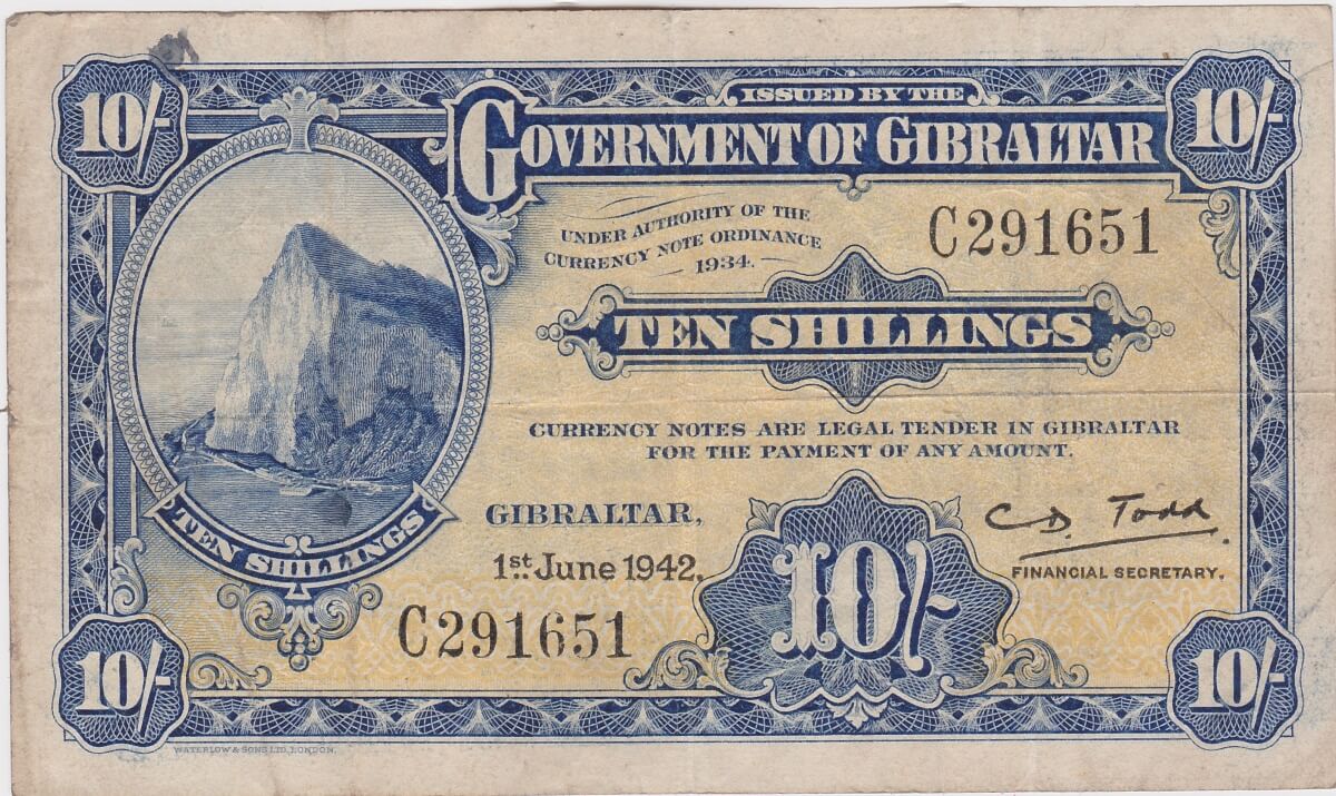 You are buying the P14b Gibraltar Ten Shillings Banknote in the pictures.